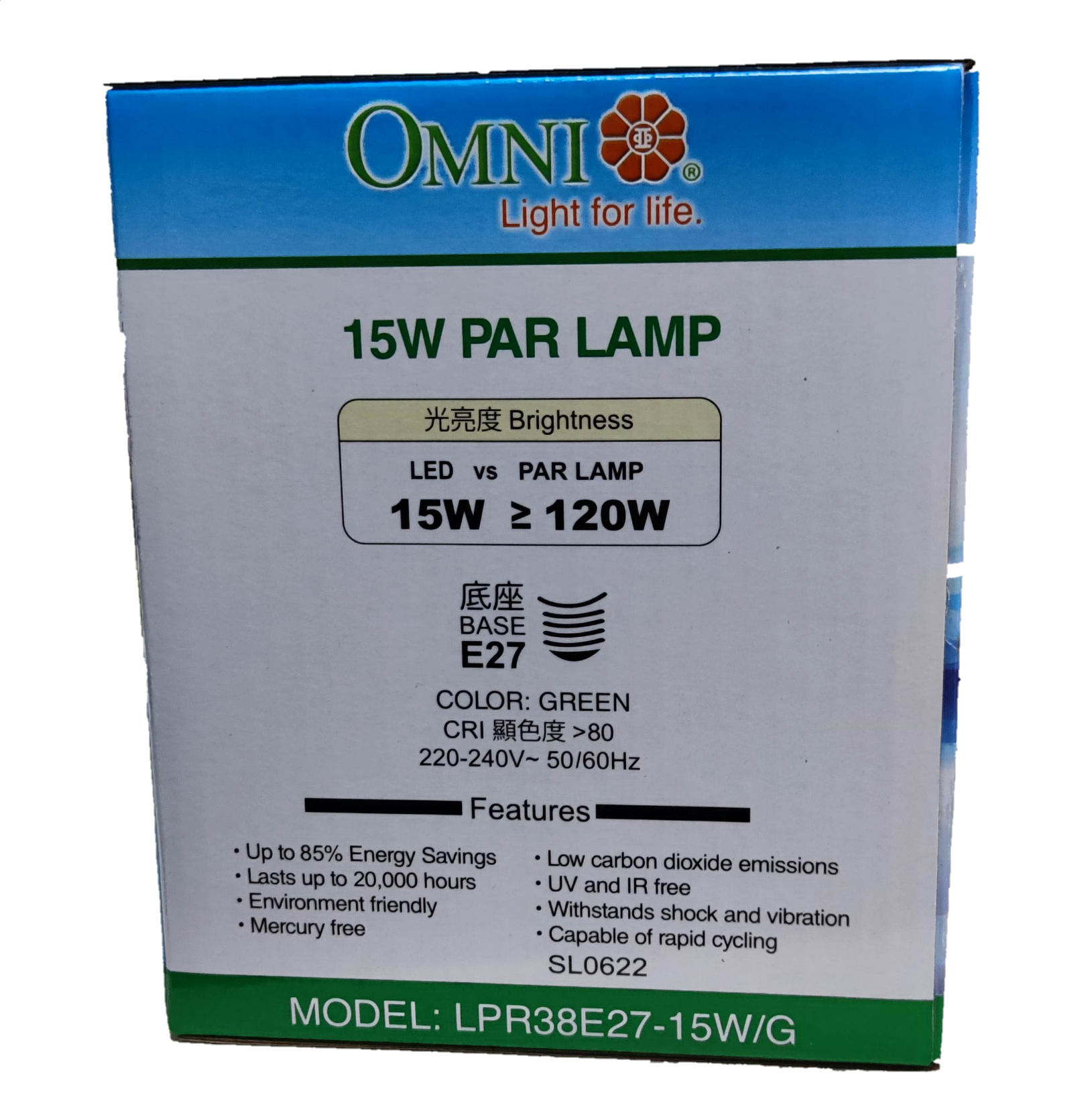 Omni 15W PAR 38 E27 220V Green LPR38E27-15W/G, LED PAR 38 15W E27 220V Green