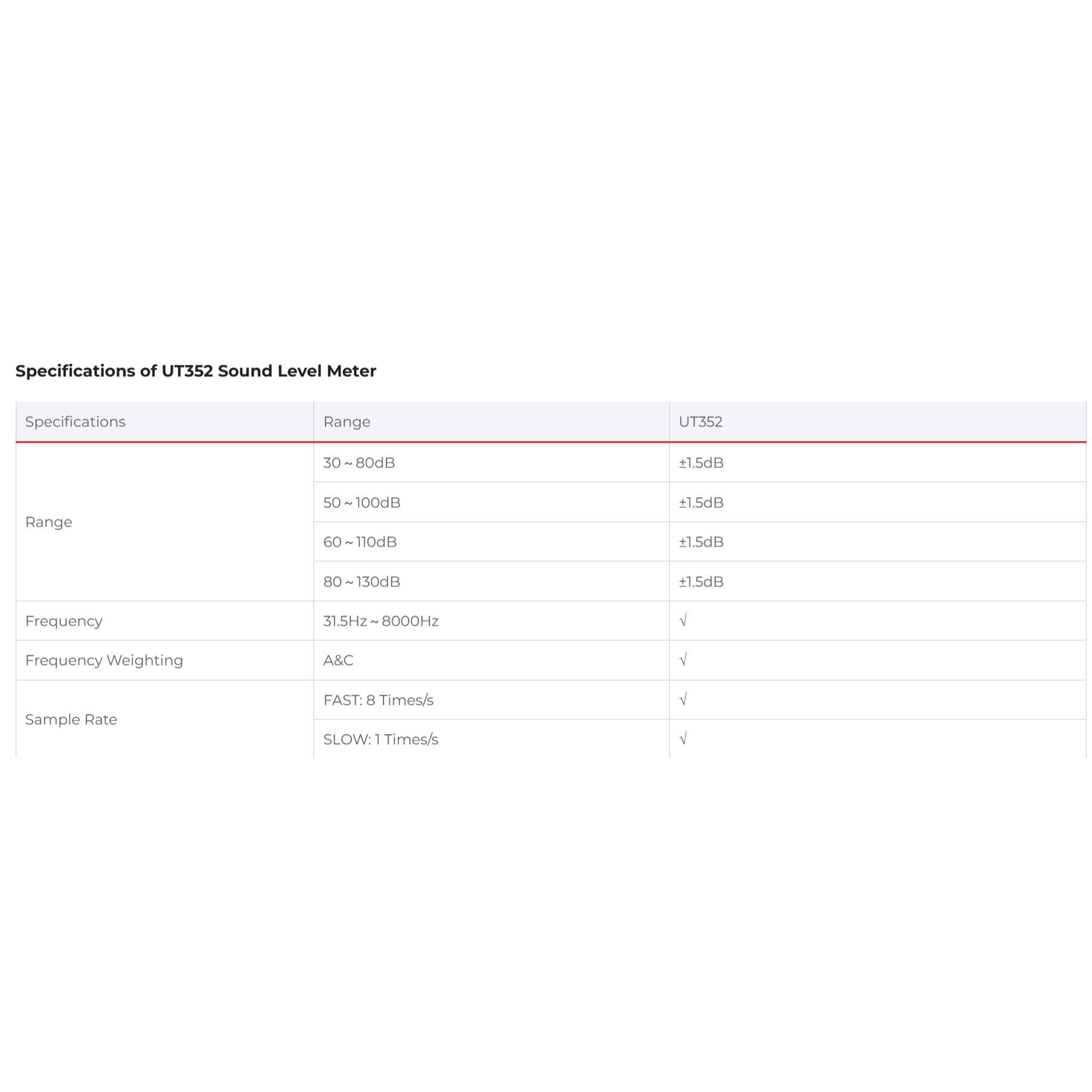UNI-T Digital Sound Meter UT-352 130dB Max